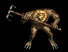 | 到第七级时你将经常猎取这种生物,危险之处在于它们常常结群行动。通常它会丢下青铜宝剑、短剑、铁剑、轻型盔甲、凝霜、金创药和魔法药等。他会给你25点经验值,而且均匀分布在地图中。 |